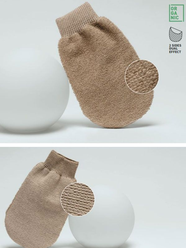 Ylellinen hieronta-/pesukinnas jonka toinen puoli on karheampi ja toinen pehmeämpi. Luonnollisesti kierrätetyistä raakamateriaaleista valmistettu. Bambulla on antibakteerinen vaikutus. Loistava kuorintakinnas sokeroinnin jälkeiseen kotihoitoon.
