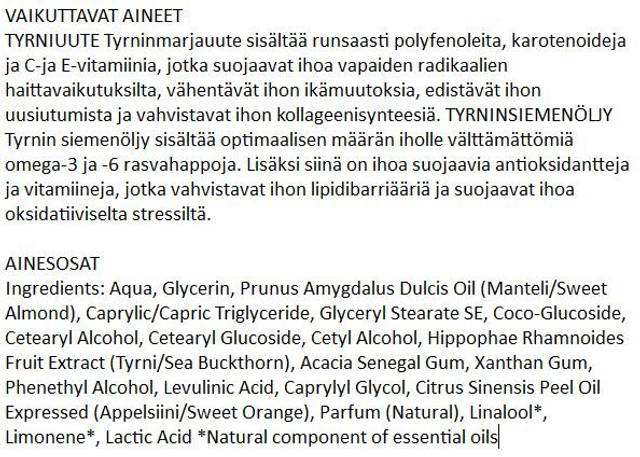 Täyteläisen kosteuttava Ekopharma Tyrni VITAL Puhdistusemulsio puhdistaa meikin, lian ja ilmansaasteet iholta säilyttäen ihon luonnollisen suojan. Kasviperäiset aineet puhdistavat hellävaraisesti, mutta tehokkaasti ja emulsio huuhtoutuu iholta helposti. Tyrniuute ravitsee, kosteuttaa ja kirkastaa ihoa. Tyrni Vital Puhdistusemulsio sopii kaikille, jotka kaipaavat täyteläisen hoitavaa puhdistusta.